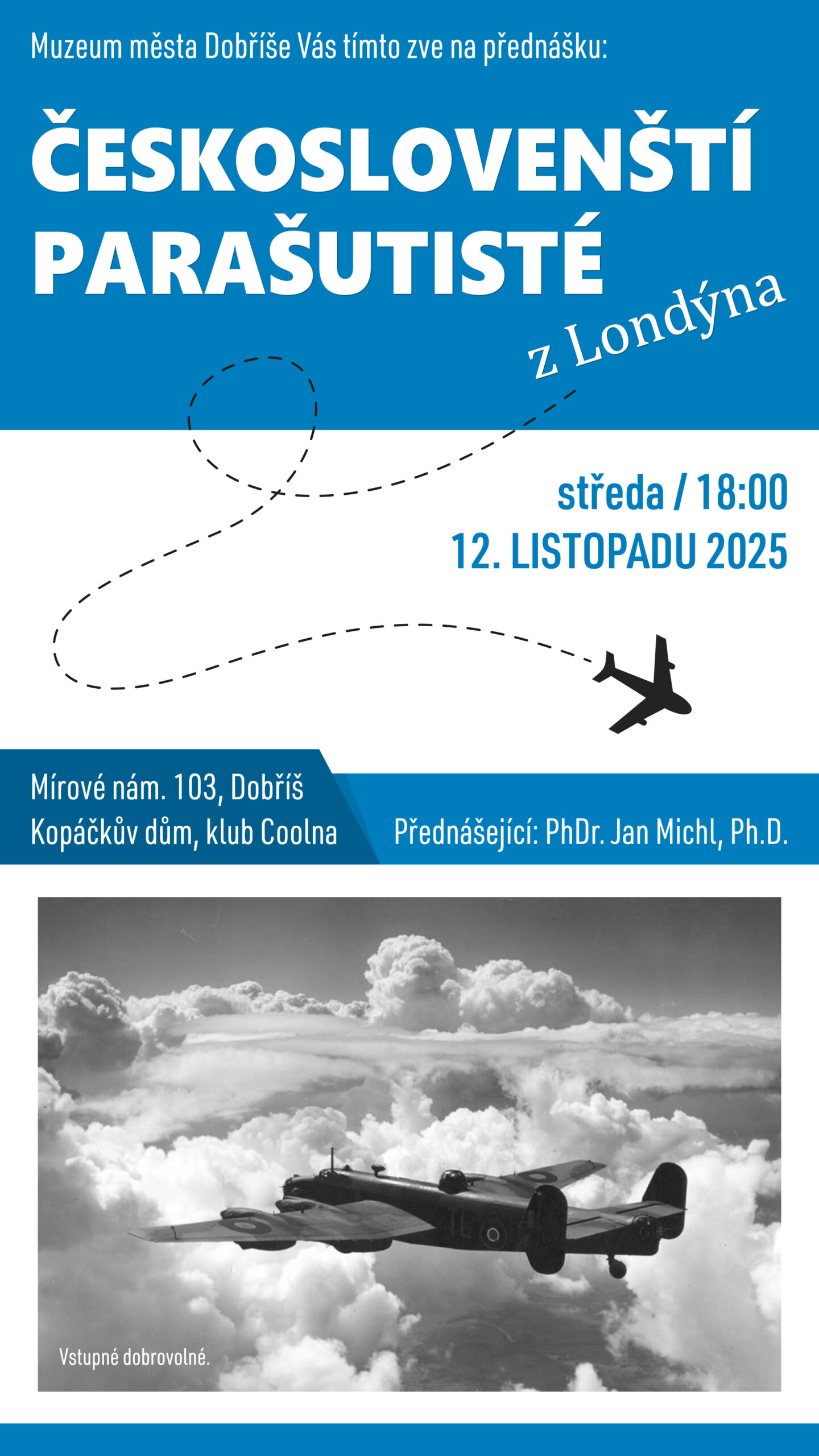 Nedávné slavnostní uložení ostatků rtm. Vladislava Soukupa na dobříšském hřbitově oživilo vzpomínku na mladé muže, kteří vysazeni nad protektorátem v době, kdy byli nacističtí okupanti nejsilnější a nejmocnější, se snažili splnit svůj úkol, za který v drtivé většině případů zaplatili cenu nejvyšší. Přednáška pojednává o genezi výsadkových operací v prvních dvou vlnách v letech 1941 až 1943, kdy letouny s čs. parašutisty startovaly z Velké Británie. Právě po smrti rtm. Vladislava Soukupa a ostatních členů výsadku v březnu 1943 lety na více jak rok ustaly a v roce 1944 pokračovaly už výhradně jen z italských letišť.